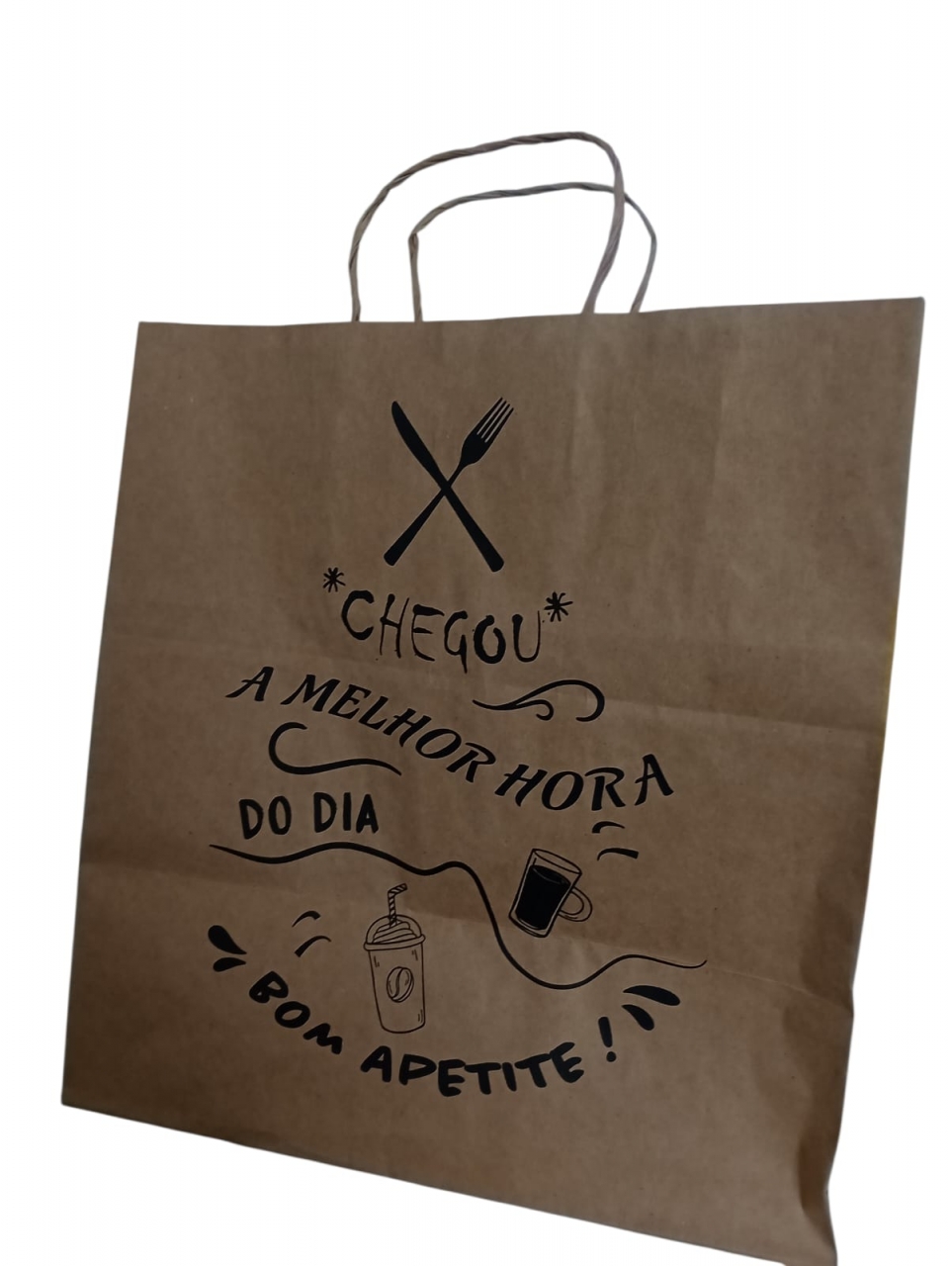 Kit 50 Sacolas de Papel Kraft Delivery G - 30x19x32cm - Estampa "Bom Apetite"