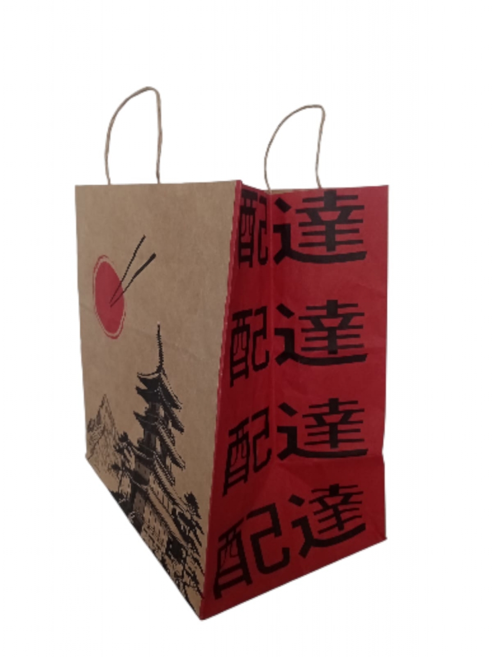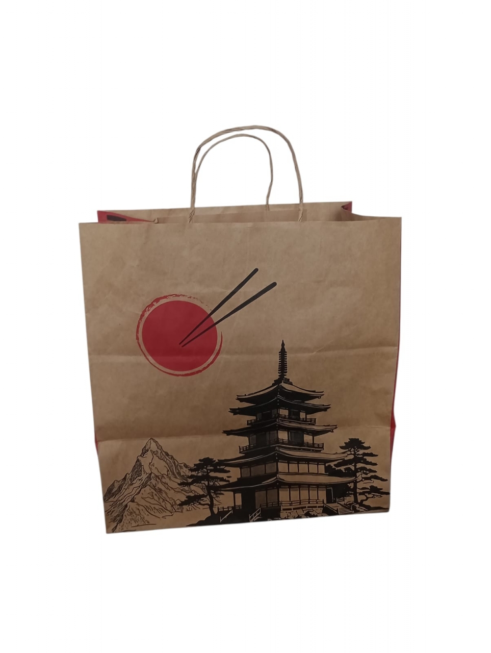 Sacola de Papel Kraft para Delivery - Estampa Oriental (G) com 50 uni